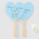 Dieser Paddle-Fan wird in einer hübschen Herzform mit silberfarbenen Kristallherzen mit extravagantem Schriftzeichen mit Beispielnamen und Datum gezeigt, die Namen und das Datum auf Ihren angepasst und geändert. Farbe Blau Text Farbe Grau