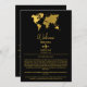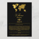 A black and gold destination wedding passport design with gold world map, airplane and travel elements. This design is ideal for all Spring, Summer, Fall and Winter destination weddings. An elegant black and gold wedding travel design with passport layout, world map and custom couple photo. A modern destination wedding Itinerary program design with elegant elements. Matching wedding invitations and other stationery items are also available.
