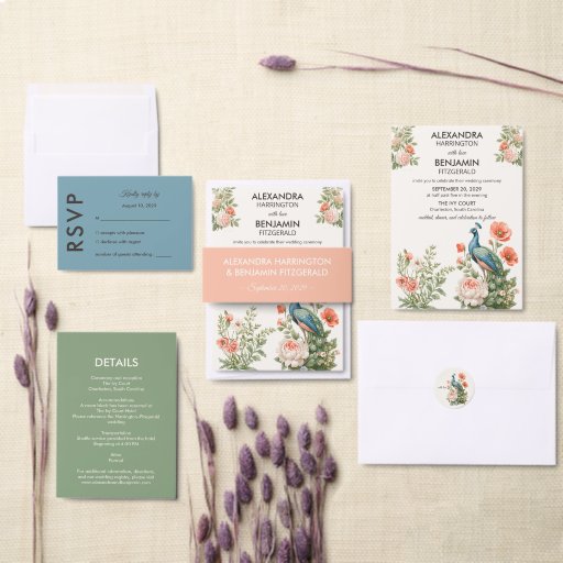 Wedding Peacock Botanical | Vintage Floral Art Einladung