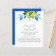 This botanical wedding program features watercolor lemons in shades of yellow with blue and green leaves. The bride and grooms names and wedding program timeline are set in hand lettered script and sans serif typography. The wedding processional order reverses to a solid Mykonos blue color. This double sided design is a modern choice for Mediterranean, Tuscan, Italian and Greek Alfresco weddings. Art and design by Victoria Grigaliunas of Do Tell A Belle. To see more from this wedding theme, visit www.zazzle.com/dotellabelle