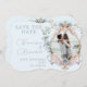 Ein opulentes Vintages Notzeitalter thematisierte Hochzeitsdesign. Mit eleganten gerahmten Wappen rund um Ihre Initialen Weich blau mit Blautönen lila und Rosa in Pastelltönen, die die Zeiten der Notlage widerspiegeln. Vintages und elegantes Hochzeitsdesign. Ändern Sie einfach die Informationen für Ihr eigenes, individuelles Design. Ändern Sie das Platzhalterbild mit Ihrem eigenen Foto. Elegantes formales Hochzeitsdesign.