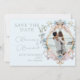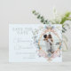 Ein opulentes Vintages Notzeitalter thematisierte Hochzeitsdesign. Mit eleganten gerahmten Wappen rund um Ihre Initialen Weich blau mit Blautönen lila und Rosa in Pastelltönen, die die Zeiten der Notlage widerspiegeln. Vintages und elegantes Hochzeitsdesign. Ändern Sie einfach die Informationen für Ihr eigenes, individuelles Design. Ändern Sie das Platzhalterbild mit Ihrem eigenen Foto. Elegantes formales Hochzeitsdesign.
