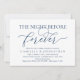 Planning a wedding Rehearsal Dinner celebration with the to-be Bride and to-be Groom, before their BIG day? Invite the guests with this "the night before forever" Perfect modern romantic navy blue Wedding Rehearsal Dinner Invitation Card.