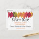 Send off the "Save The Date" announcement for your autumn wedding date with a top border of colorful fall leaves on string. Personalize the front and back text in the template fields or click customize to select a typeface style, size and color you prefer.