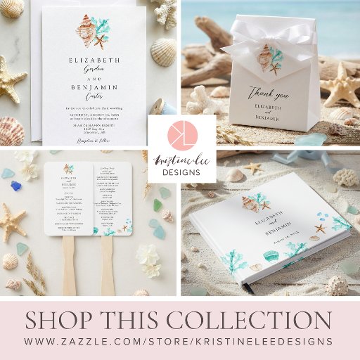 Elegant Coastal Seashell Watercolor Beach WeddingDesignt von Kristine Lee