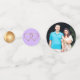 Hochzeit und Verlobung Thema Konfetti, mit dem größten Stück ein maßgeschneidertes Foto darauf. Die kleinen Stücke von Konfetti haben Grafiken eines goldenen Ball-Look mit der mittelgroßen Scheibe haben Grafiken von zwei eingeflossenen goldenen Herzen, auf einem Hintergrund Farbe Ihrer Wahl.