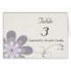 Stilvolle Hochzeits-Empfangs-Tischnummerkarte getan in einer Sahnefarbe. Ein großer trendy Lavendel und eine rosa Blume verzieren die links Seite dieser hübschen Tischnummerkarte. Text ist in der Schriftartart, -farben und -größen völlig kundengerecht.