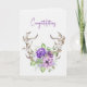 Aquarellblütenstrauch auf Hirschgeweih auf einem weichen, strukturierten Hintergrund für die Glückwünsche der Neuvermählten.