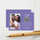Moderne Minimalistische Einfache Hochzeit Website Umschließungskarte mit QR Code. Ein paar Fotos vorne. Lavendelblau