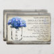 Wedding Weckglas-Scheunehölzerne blaue Hydrangeas Einladung
