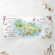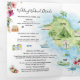 The design includes a full illustrated map of Maui highlighting beaches, waterfalls, outdoor activities, and island landmarks, along with thoughtfully arranged panels for the wedding weekend itinerary, recommendations for sightseeing and food, and ceremony details. Tropical florals, palm trees, and ocean elements frame the layout without overwhelming the content.