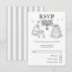 Wedding Whimsical Doodles Grey and White wedding RSVP response cards. This Modern Simple Minimalist Wedding wedding RSVP from Ricaso allows you to customize with your own text . Announce your big day is style with these RSVPs made especially for you. Add your own personal details. Featuring a striped background in tones of grey and white with hand drawn icon style details.