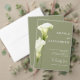 This wedding Wine Label features a sophisticated, minimalist style. Delicate calla lilies in soft green hues are depicted against a light background, creating an atmosphere of sophistication and tranquility. The design is modern, airy, and perfect for a stylish, romantic wedding.