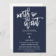 Denn wenn die Umstände gemein, dass es leider für Sie notwendig ist, den Hochzeitstag zu verschieben, ist dies ein bequemer Weg, um Ihre Gäste wissen, Ihre Änderung der Pläne und neue Datum so schnell wie möglich. Dieses typografische Design hat ein modernes, weißes Set-Skript an der Spitze Worth the Wait mit einem Herzmotiv. Die Erholung des Textes in Weiß, Sie können leicht personalisieren, mit einem marineblau Hintergrund auf der Vorderseite und weiß auf der Rückseite. Text- und Hintergrundfarben auf beiden Seiten können auf Wunsch über die Option Weitere einstellen geändert werden.