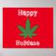 Weed Leaf Weihnachten glücklichen Holidaze. Das sonnige rote und grüne Weihnachtsposter hat auf rotem Hintergrund ein Giftweed mit weißem, wackeligen Text mit dem Titel "Happy Holidaze".