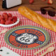 Berühmter Weg 66 fängt in Chicago an und macht es, ist Weise zur Westküste. Sie werden Liebe diese Grafik Beunruhigenblick Weges 66, die Sie hat, über das Nehmen einer Reise der langen Straße in den Horizont zu träumen. Dieser Teller ist für Ihre folgende Picknick- oder Autovereinsitzung perfekt!