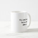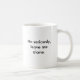 Einfache Tasse im Weiß mit schwarzen Buchstaben. Eine Seite sagt, dass "weggehen Sie." Die andere Seite sagt, "kein ernsthaft, verlassen mich allein."