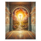 Ein Gang, der in einem kontemplativen Wandgemälde des Kreuzes endet