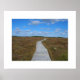 Die Strandpromenade überquert einen Abschnitt von Barrens am Ufer des Kejimkujik Nationalparks. Dieses flache Land unter einem strahlend blauen Himmel ist Zuhause zu schönen Wildblumen und Fleisch fressenden Pflanze. Hier im Herbst können Sie viele dieser Pflanze sehen, die hell rot werden.