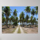 Rangiroa, Französisch-Polynesien. Straße mit Palmen auf der tropischen Insel.