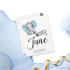 Adorable Baby Boy Elefant mit blauen Polka dot Ohren, "Due in June" Typografie, und Vorlage für besondere Nachricht Ankündigung der Schwangerschaft.