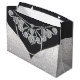 Weiblich elegante schwarz-silberne Geschenktasche mit schöner Diamantenstreuung auf elegantem schwarz-silbernen Hintergrund. Diese extravagante, schwarz-silberne Geschenktasche ist leicht mit Text personalisiert.
