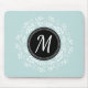 Chic Mousepad mit Minzblau-Blumenkranz und personalisiertem Monogramm.