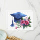 Diese 2025 Graduiertenwoche mit einem femininen, blauen Graduierungspapier und rosa Blume auf der Vorderseite und perfekt koordiniert mit den Umschlag-Aufkleber-Siegel und Adressetiketten auch in meinem Shop erhältlich. Hinter einer kleinen Ecke ist eine weitere blaue Mörtel mit grünem Blattwerk und blauen Blumen angebracht, in der die Danksagung des Absolventen verlassen wird! Design von Amanda Renee, CtrlZ Digital Designs