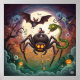 Eine hochwertige Grafik einer skurrilen Halloweenszene mit einer Spinne, einer Schlange, einer Fledermaus und einer Maus in einem mondbeleuchteten Friedhof. Dieses Design ist perfekt für eine breite Produktpalette für diejenigen, die einzigartige und fantastische Urlaubsthemen genießen.