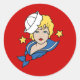 Weibliches Weibchen in Segelhut und Shirt. Ein klassisches Vintages Tattoo.