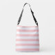 Frau mit herzschwarzer Silhouette auf rosa und weiß gestreifter Tasche. Bild nur auf der Vorderseite.