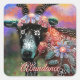 Weibliche Ziegenfarm Tier Blumenpfirsich Quadratischer Aufkleber