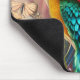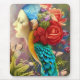 Weibliches Gesicht mit blumigen Pfauenfedern Mousepad