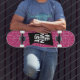 Weibliches Mädchen der feministischen Frauen ich Skateboard