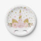 Rosa und die weibliche Goldpapierplatten-Aufmachung erröten rosa Watercolor-Blumen und ein hübscher Unicorn