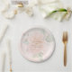 Eine weiche Blüte von Rose in Rosa und Weissgrün bildet den Mittelpunkt vieler der Teile dieser Hochzeitssuite, die auch eleganten Drehtext und modernes Design bietet. Die hier gezeigten Teller haben eine zentrierte Anordnung von Rose auf einem gedämpften, wasserfarbenen Hintergrund mit Ihren Namen und Hochzeitstermin in Gold. Geben Sie einfach Ihre Daten mit der bereitgestellten Vorlage ein. Sehen Sie sich den Link Sammlung auf dieser Seite an, um alle passenden Elemente in diesem schönen Design zu sehen, oder suchen Sie ID828, um zusätzliche Farboptionen für dieses Design zu sehen.