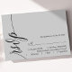 Markieren Sie Ihre Präsenz mit einer Touch zeitloser Eleganz. Diese weiche, graue RSVP-Karte verfügt über ein anmutiges Kalligraphieskript, das Ihrer Hochzeitsarbeit eine Touch an Eleganz verleiht. Das minimalistische Design sorgt für Klarheit, während der elegante Schriftart eine Touch der Formalität verleiht. Diese RSVP-Karte fügt sich perfekt in Ihr einfaches Hochzeitstil ein und verbindet sich mühelos mit romantischer, schicker oder anspruchsvoller Ästhetik. Personalisieren Sie es mit Ihren Namen und Hochzeitsdetails, um eine kohärente Antwort-Suite für Ihren besonderen Tag zu schaffen.