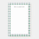 Diese persönlichen Notizen sorgen für ein angenehmes und angenehmes Ambiente! Personalisieren Sie mit Ihrem eigenen Namen, Familiennamen, oder als Geschenk an jemanden als glückliche Überraschung. Die Kante ist mit einem weichen, grün und blau karierten Muster gesäumt, das von Annie Montgomery Design entworfen wurde.