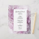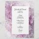 Das hübsche "Soft Pink Hydrangea Wedding Menu" mit den Details der Mahlzeit, die Sie in Ihrem Brautparty, Verlobungsfeier, Hochzeitsempfang oder Brunch servieren, indem Sie den Salat oder den ersten Gang, Vorspeise oder zweiten Gang und Dessert oder dritten Gang hinzufügen. Personalisieren Sie es mit den Namen der Braut und des Bräutigams, dem Veranstaltungsort und dem Datum der Ehe. Dieses elegante Brausekarte mit Blumen bietet ein digital erweitertes botanisches Foto einer rosa Hydrangea-Blume.