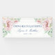 Fügen Sie Ihrem Hochzeitsempfangszubehör dieses weich rosafarbene Rosen elegantes Blumenhängebanner hinzu. Mit eleganten Rose auf weißem Hintergrund, mit Marinebrillen. Der Text enthält: GRATULATIONS, The Bride and Groom's Vornamen und Hochzeitstag. Um Ihre persönlichen Daten zu personalisieren, fügen Sie einfach Ihre Daten in unsere einfache Vorlage ein und ersetzen den Beispieltext. Achten Sie darauf, die gesamte Soft Blush Pink Roses Elegant Wedding Collection für passende Schreibwaren und Zubehör zu sehen.