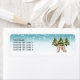 Desteis originelle Cartoon-Illustration eines bezaubernden, weich überzogenen Rasse-Hundes. Der Hund ist in einer Winterlandschaft mit drei grünen Tannenbäumen und fallendem Schnee untergebracht. Der Hintergrund ist ein blaues bis weißes Gefälle, das das Design des kalten Wintertages verleiht. Neben dem Hund gibt es einen personalisierbaren Textbereich.
