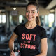 Minimalistische pastellrosa Typografie mit dem Text "Soft but small" in einem sanften, ästhetischen Stil. Ideal für niedliche, leichte und spielerische Geschenke oder Kleidung.