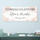 Eine weiche Wasserfarbe Blush Bloral Hochzeitsgratulation Banner für Ihre Hochzeitsempfehlung. Der Text ist in sanften Rosatönen und Taupe-Tönen gestaltet, mit zarten blumigen Ästen, und beinhaltet: GRATULATIONS, The Bride and Groom's First Names and Wedding Date. Um Ihre persönlichen Daten zu personalisieren, fügen Sie einfach Ihre Daten in unsere einfache Vorlage ein und ersetzen den Beispieltext.