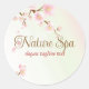 Nature Wellness-Center Aufkleber Design mit sanften Farben, Kirschblüten Blume mit individualisierbarem Text in Braun und Rosa.