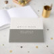 Modernes, minimalistisches Gästebuch mit kühnen Typografien und einem schönen, weichen grauen Farbschema.