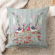 Der Hintergrund dieses Entwurfs ist ein hölzerner Zaun oder ein Scheuneneffekt in einer weichen aquamarinen grauen Farbe. Über diesem sind Sprigs der Herz geformten Blumen und des Blätter in den Schatten von rosa, von Rotem, von aquamarinem und von Braunem mit einem Paar hübschen Vögeln im Watercolor. Die Rückseite dieses großen grauen Wurfskissens ist gerade der hölzerne Effekt.