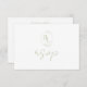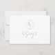 Frisch und schön mit spielerischer Eleganz. Diese zweiseitige RSVP-Antwortkarte zeigt ein florales gerahmtes Monogramm in sanft grünen Farben vor einem knackigen, weißen Hintergrund. Der weiche grüne Schriftart wird auf der Rückseite der Karte wiederholt. Die Auswahl an Speisen und die Anwesenheit machen es den Gästen leicht, ihre Wahl zu treffen.