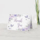 Weiche Lila Blumenschmetterlinge Silver Quinceañer Dankeskarte