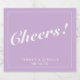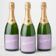Hübsches, modernes, minimalistisches und trendiges Hochzeitsflaschenlabel mit lila Hintergrund (Pantone's 2022 color pick "Orchid Bloom") und weißen, anpassbaren Textblöcken in modernen Schriftart