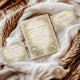 Ein dezentes Wasserfarben-Wiesendesign mit zarten Gänseblümchen, rosa Kosmos, blauen Kornblumen und fröhlichen gelben Blüten, die in einer frischen Frühlingsanordnung zusammengestellt sind. Die Blumen erheben sich natürlich vom unteren Rand des Layouts und schaffen eine luftige, offene Komposition mit einem warmen Pergamenthintergrund. Leicht, romantisch und mühelos elegant, fängt dieses Design den Charme eines sonnendurchfluteten Landgartens ein. Perfekt für eine Braut, die naturinspirierte Details mit einer zeitlosen, eleganten Note liebt.